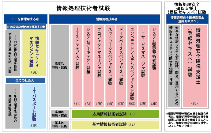 | ITパスポート試験(ITパスポートしけん、Information Technology Passport Examination、略称:iパス)は、情報処理の促進に関する法律第29条第1項の規定に基づき経済産業大臣が実施する情報処理技術者試験の一区分である国家試験。 30キロバイト (3,409 語) - 2022年6月6日 (月) 19:55 |